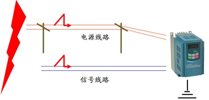 雷電對(duì)變頻器的破壞示意圖: