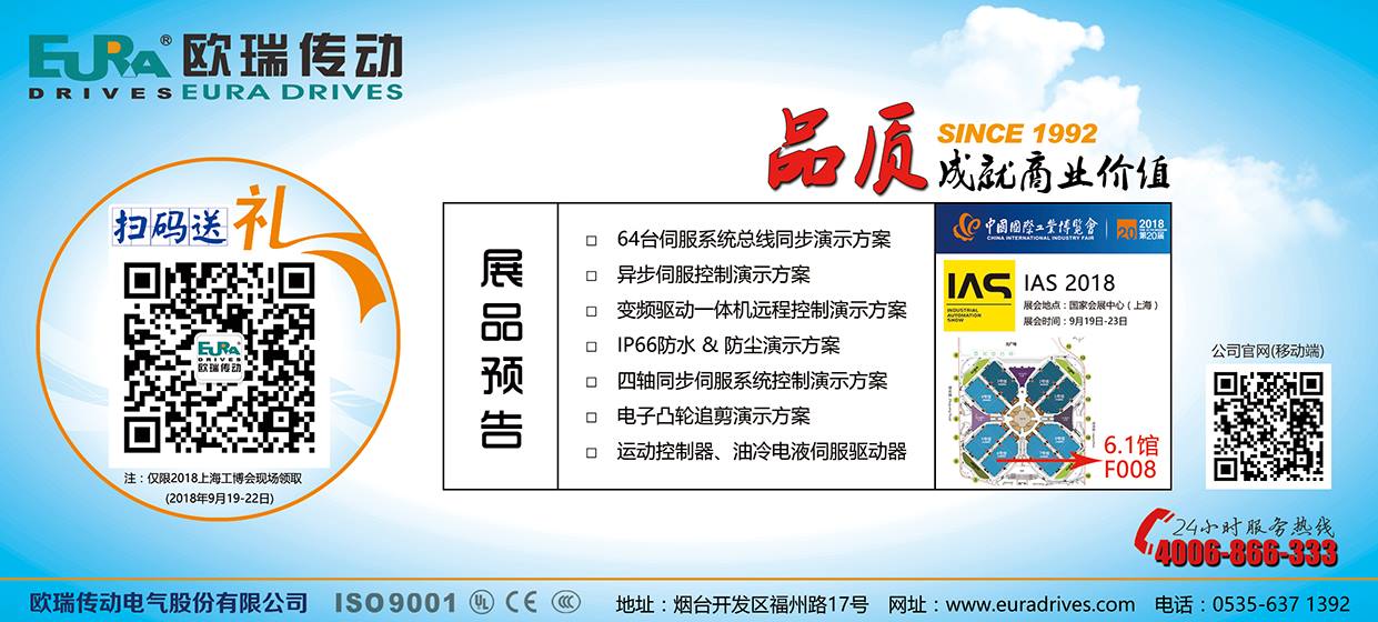 2018年9月19日至23日,一年一度的工業(yè)自動化領域行業(yè)大展將在國家會展中心(上海)召開。作為工業(yè)自動化電氣產(chǎn)品的專業(yè)生產(chǎn)廠商,歐瑞傳動將在6.1館F008展位繼續(xù)以特裝形式參展,同時將展出公司的全系列工業(yè)自動化控制、運動控制、電氣傳動和新能源產(chǎn)品及行業(yè)解決方案。