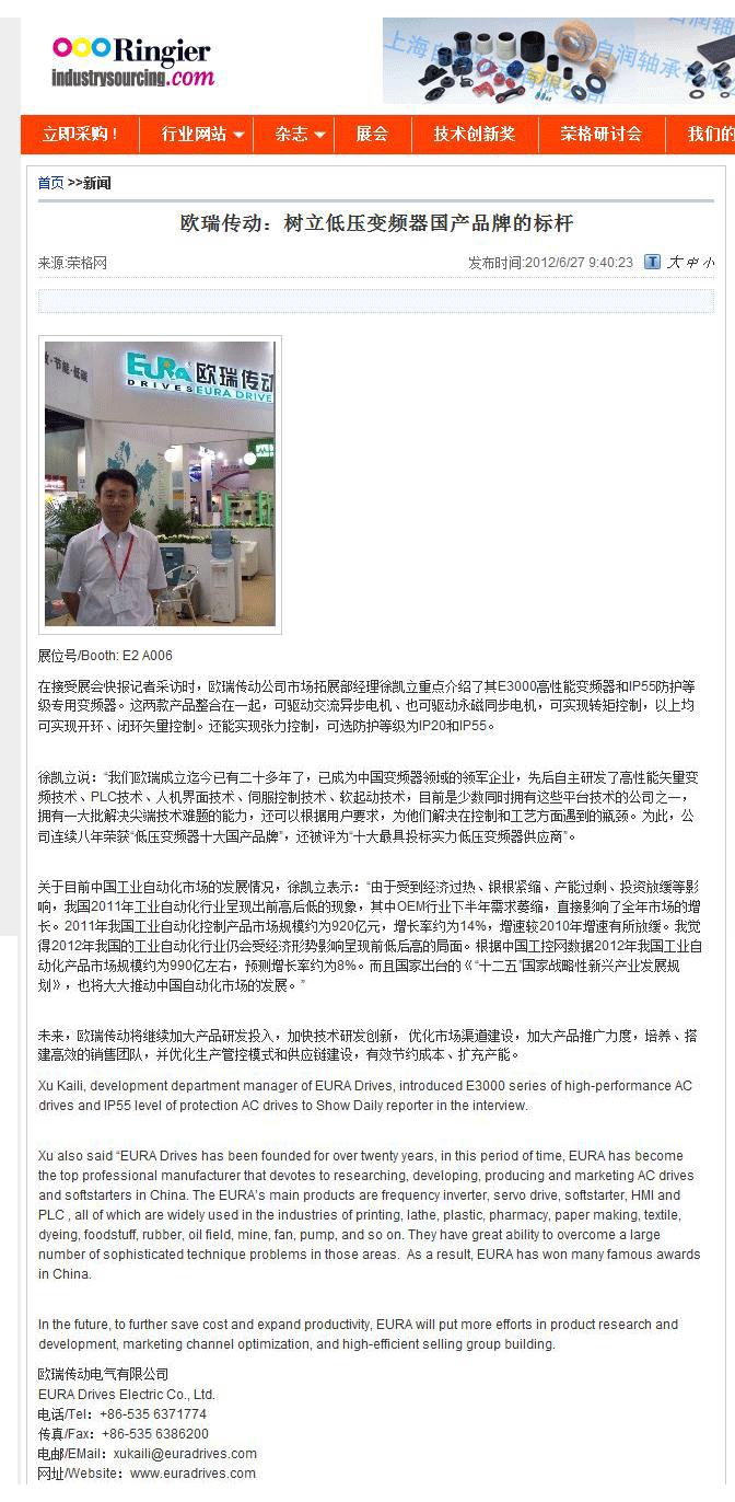 歐瑞傳動:樹立低壓變頻器國產(chǎn)品牌的標(biāo)桿——榮格FAPA專訪