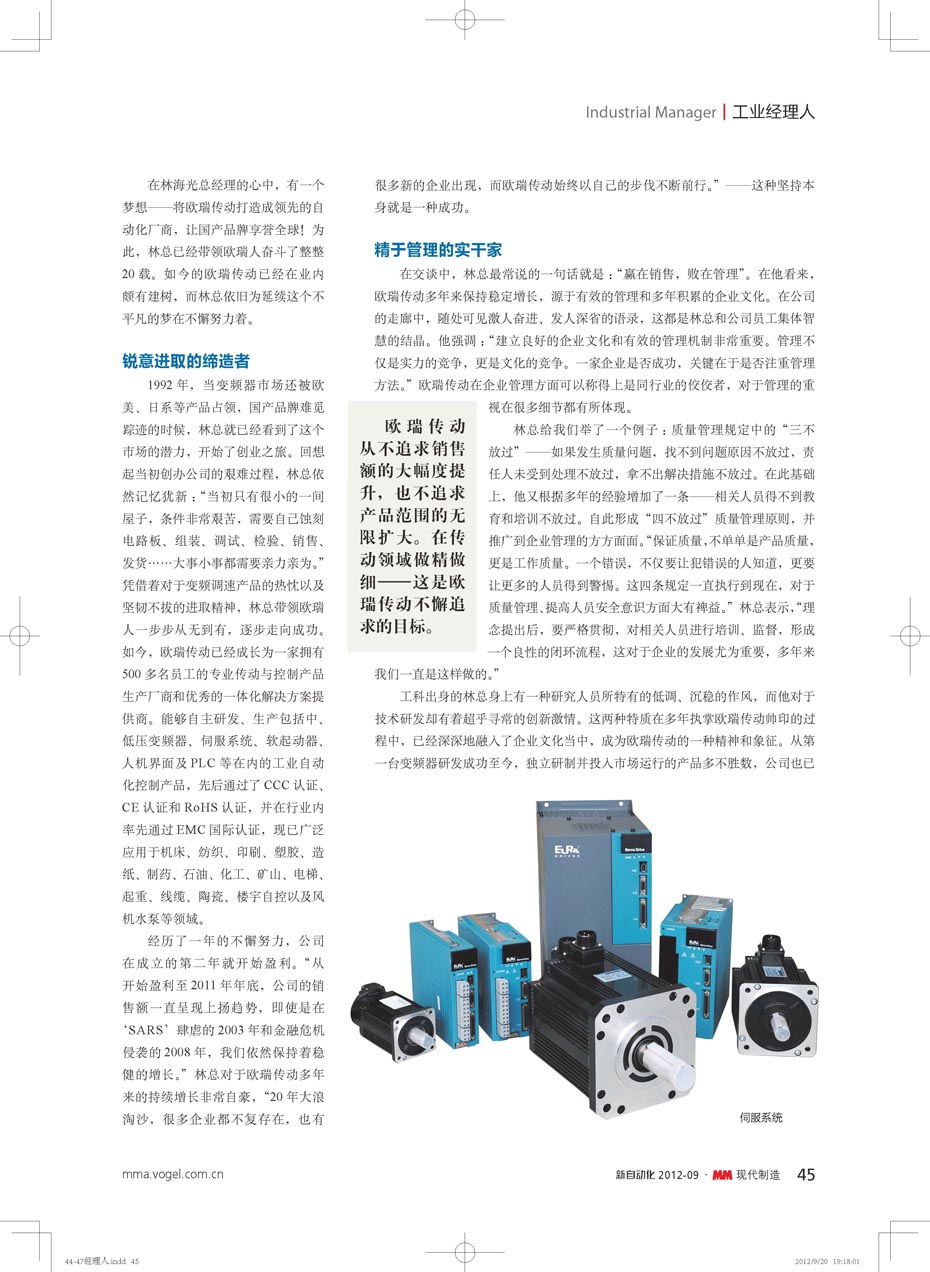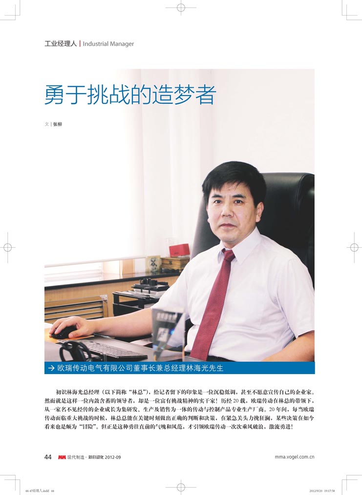 民族品牌的信心保證--訪歐瑞傳動國內(nèi)營銷副總林飛先生