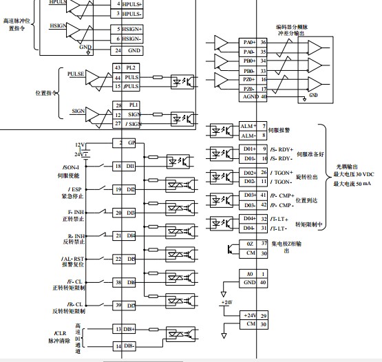 2)歐瑞伺服位置脈沖模式接線示意圖: