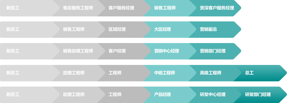 根據(jù)公司發(fā)展需要及您的個(gè)人興趣方向,公司可以開(kāi)創(chuàng)個(gè)性化的個(gè)人職業(yè)通道,任您選擇。
